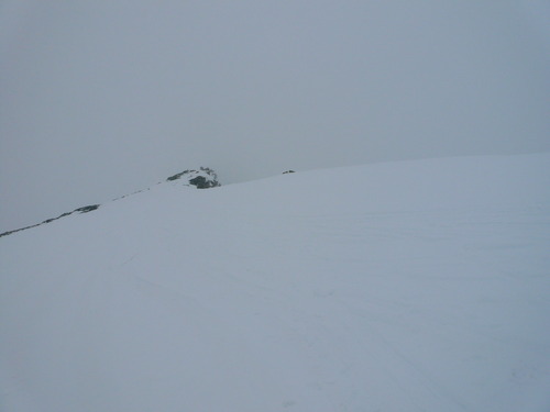 Im Nebel haben wir den eigentlichen Gipfel nicht ganz getroffen. Aber was solls: Wir sind ja wegen dem Skifahren hier...